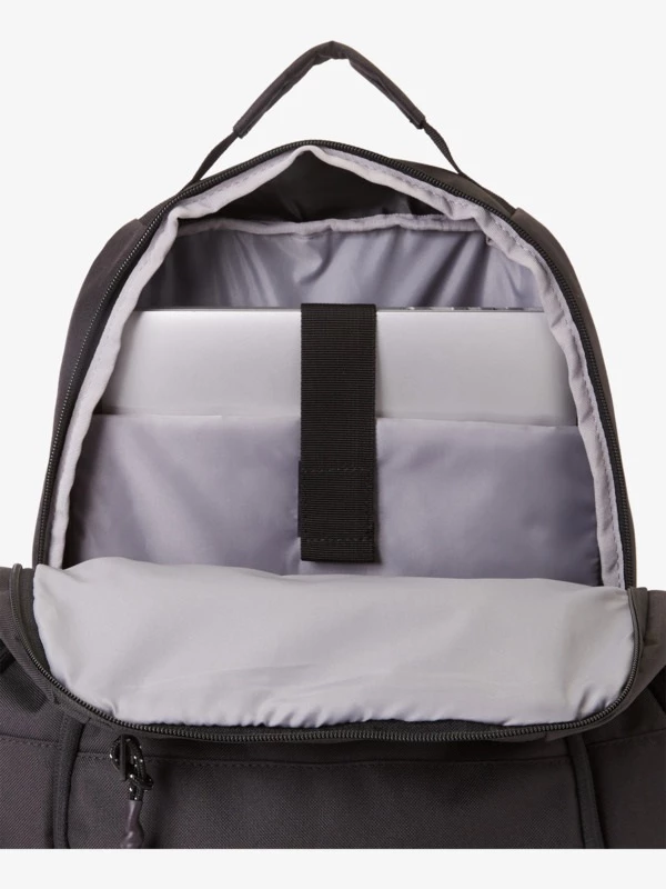 Mochila de la marca Quiksilver con 1 compartimento principal con cremallera. Bolsillo con cremallera para portatil de 15″. Bolsillo delantero con organizador. Dispone de 2 bolsillos laterales y 2 bolsillos frontales. Correas para llevar comodamente al hombro ajustables y acolchadas. Capacidad 510 ml.Color Negro