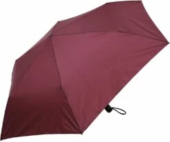 Paraguas plegable automático en color rojo burdeos de la marca Doppler, confeccionado en aluminio, con terminacion en fibra de carbono,lo convierten en un paraguas ultraligero y robusto . Su mecanismo abre y cierra aporta comodidad a su uso. Su peso es de solo 150 gr. , y su medida cerrado es de 26 cm. Su diametro abierto es de 95 cm.